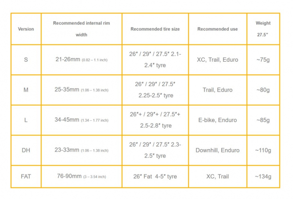 M Para llantas de 27-35 mm de ancho interior.