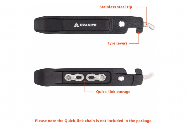 El Talon es una nueva palanca de neumáticos y una herramienta de enlace rápido. Es súper liviano con solo 40 g, lo suficientemente pequeño como para amarrarse a su marco o esconderse en un bolsillo y lo suficientemente resistente como para llegar lejos. La herramienta funciona con enlaces rápidos y cadenas de 9 a 12 velocidades. ? Las dos piezas de la garra se unen para formar una herramienta ordenada para romper y fijar enlaces rápidos en cadenas. Combina palancas de nylon reforzado con fibra súper fuertes y puntas de acero inoxidable. También hay espacio para almacenar un enlace rápido de repuesto para que nunca te quedes atascado. ? Desenganche el Talon y obtendrá dos fuertes palancas de neumáticos para ayudar a arreglar esos molestos pinchazos en los senderos. Es lo suficientemente resistente para todos, excepto los neumáticos más rígidos, pero, gracias al material de nylon, no arruinará esas costosas llantas de carbono. Detalles: Dimensión: 8 (H) x 19 (W) x 130 (L) mm / 2pc Peso: 40 g / 2 piezas De color negro