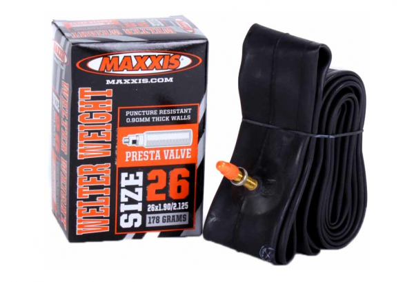 Las cámaras Maxxis Welter Weight están diseñadas para los ciclistas agresivos que requieren durabilidad en sus cámaras de aire. Las cámaras de peso medio de nuestra línea están dirigidas a todas las disciplinas de la conducción.