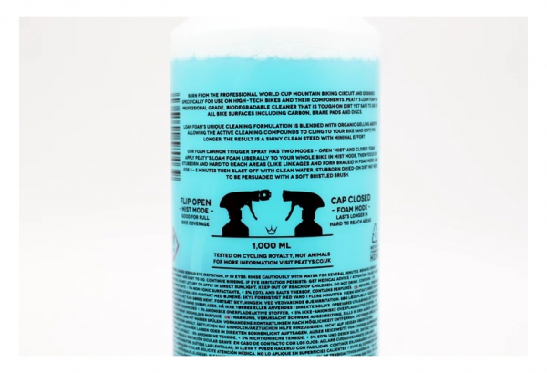 Peaty's Loam Foam es un limpiador de bicicletas de grado profesional que cambiará la suciedad rápidamente. La solución es biodegradable y segura en todas las superficies de la bicicleta, incluidos discos y almohadillas. ¡No es necesario enjuagar la bicicleta antes de usarla! Simplemente aplique la espuma franca de Peaty abundantemente a toda la bicicleta, espere de 3 a 5 minutos (tiempo para hacer una infusión) y despídala con agua limpia. Es posible que deba persuadir a la suciedad persistente e impregnada para que desaloje su valiente corcel con un cepillo de cerdas suaves y luego se enjuague con agua fría.