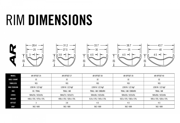 Race Face’s popular AR rims have been updated for 2019 with our asymmetric rim profile, improving spoke tension balance and overall wheel build quality and durability. The rim extrusion has also been improved to increase impact performance for more aggressive applications. With 5 widths available, tubeless compatible rim profile, and color match capabilities, these rims are ready for any build you can throw at them.