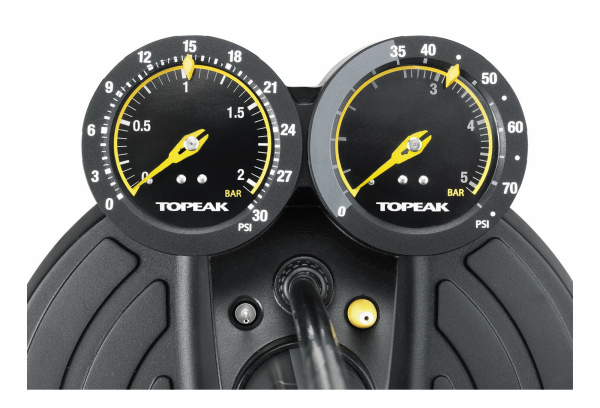Esta ingeniosa bomba de piso de doble calibre fue diseñada exclusivamente para neumáticos Fat-Bike de baja presión y neumáticos MTB de presión moderada. Un enorme barril sobredimensionado es 1,5 veces más grande que una bomba de suelo estándar y proporciona un gran volumen de aire para llenar neumáticos de gran tamaño rápidamente. Un manómetro de 30 psi (2 bar) muestra una baja presión precisa para los neumáticos Fat-Bike, mientras que el manómetro de 75 psi (5 bar) muestra una mayor presión para los neumáticos MTB. Un botón de liberación de aire en el TwinHead permite una presión de ajuste fino. Caracteristicas : Doble manómetro: 30Psi / 2 bares, 75Psi / 5 bares TwinHead con botón de liberación de aire y manguera x largo Se adapta a válvulas Presta / Schrader / Dunlop Diseñado para Fat Bike y MTB XC / All moutain / Enduro / E-Bike Diseñado para neumáticos Fat-Bike de baja presión y neumáticos MTB de presión moderada: 44.4 mm (comparado con 30 mm para una bomba convencional) Gran flujo de aire Las agujas de bola y vejiga están incluidas y se ajustan perfectamente en su propio soporte Dimensiones: 690 x 230 x 170 mm / 27.2 x 9.1 x 6.7 " Peso: 1.9kg