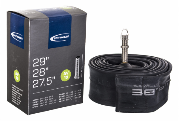 Tubo Schwalbe ATV, fiable y de excelente resistencia a la presión.Schrader con níquel y totalmente roscado